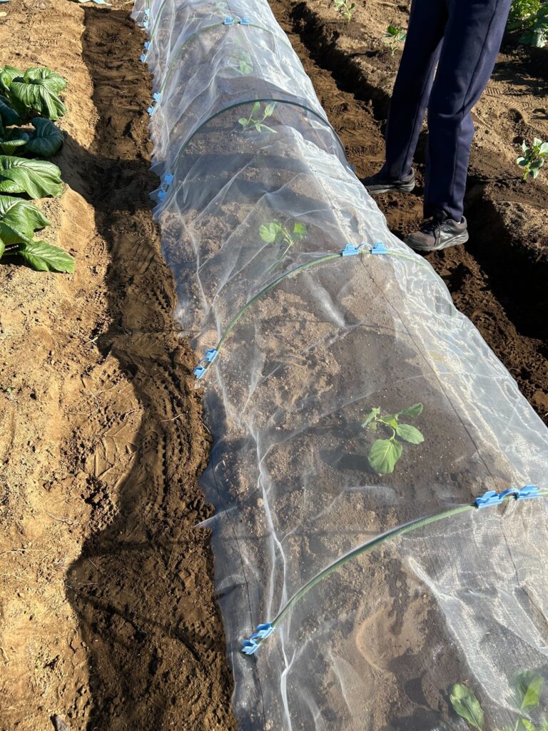 春に向けては、キャベツとソラマメを植えました。少し時期がずれてしまったので心配ですが、今のところ何とか頑張ってくれているようです。(写真はキャベツ↓夏に準備していたネットも活用できました。)