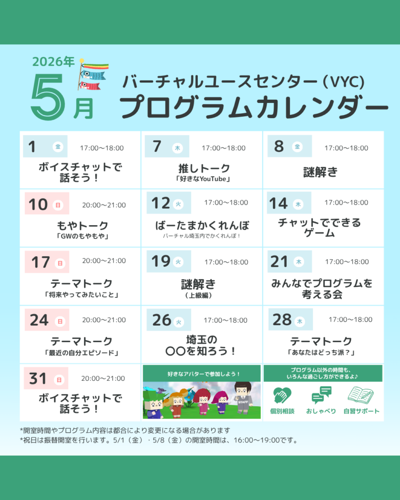 3. 埼玉県バーチャルユースセンター_5月プログラムカレンダー