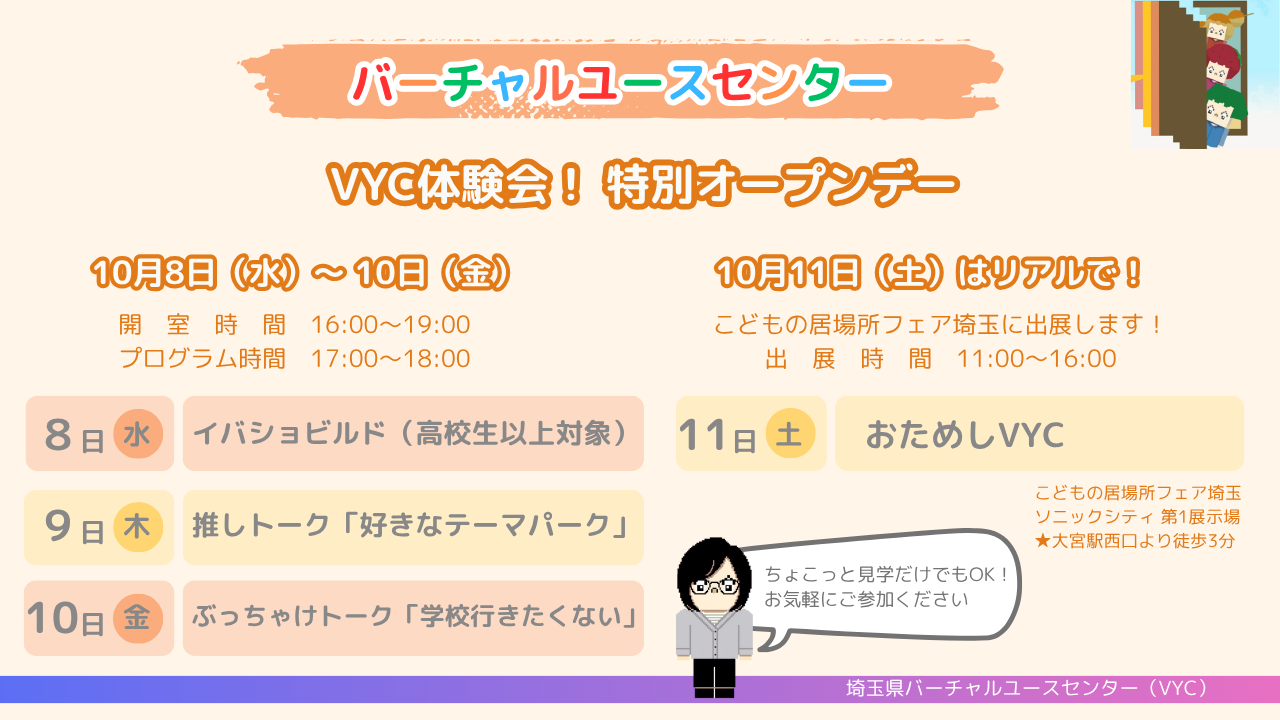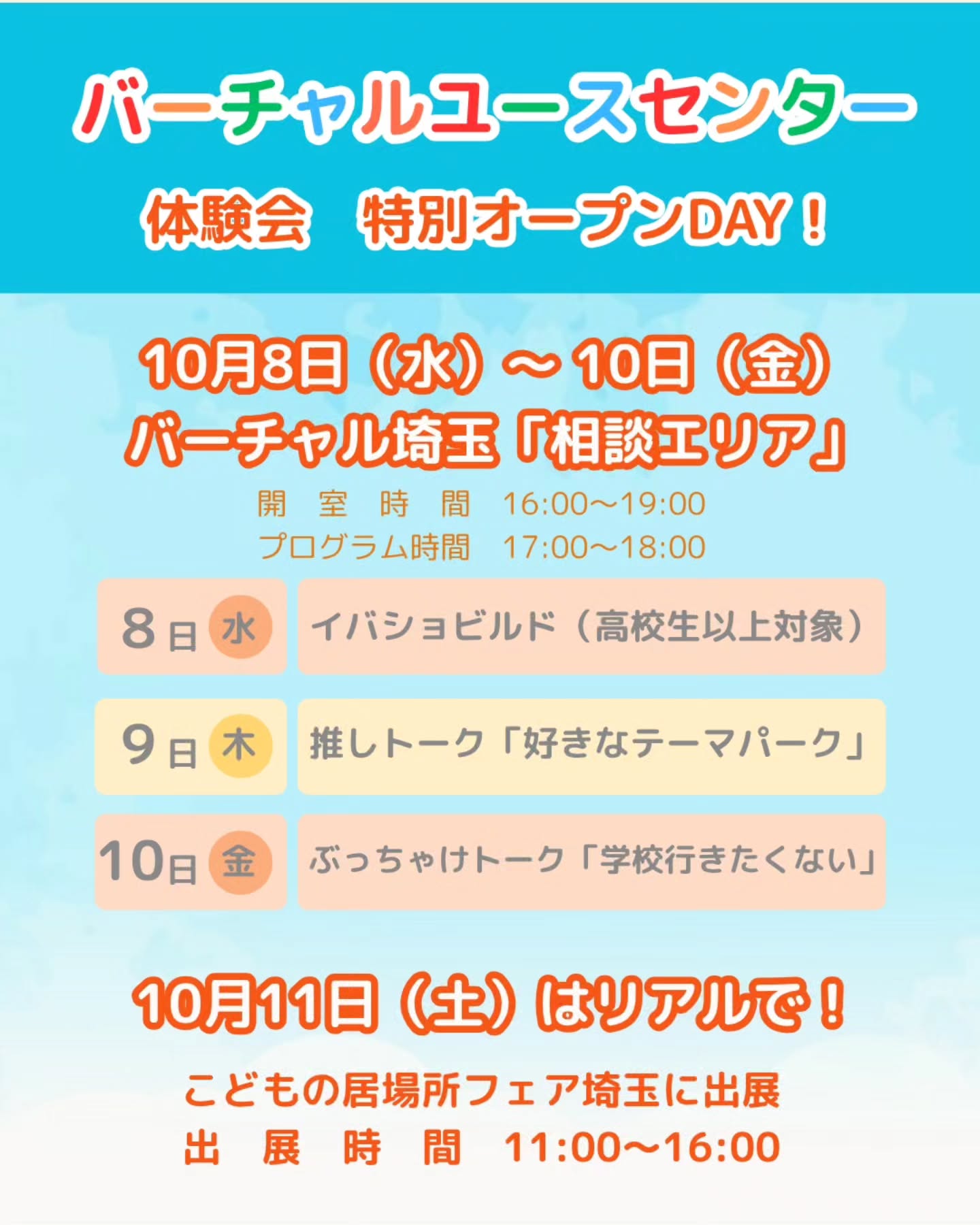 埼玉県バーチャルユースセンター_体験会と特別オープンDayのお知らせ