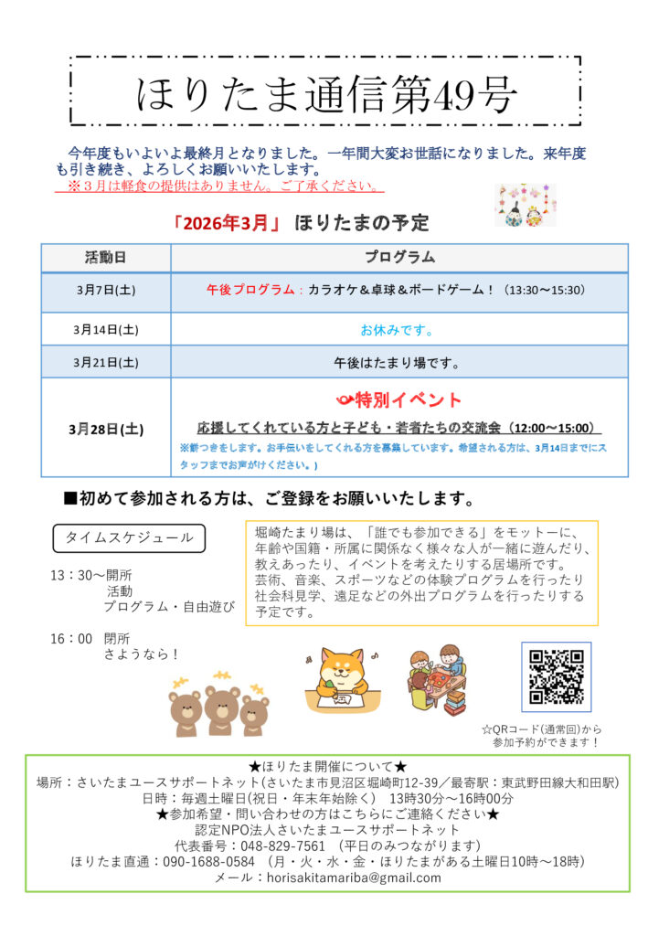 ※お手伝いしてくれる方を募集します。ほりたま職員までお声がけください。