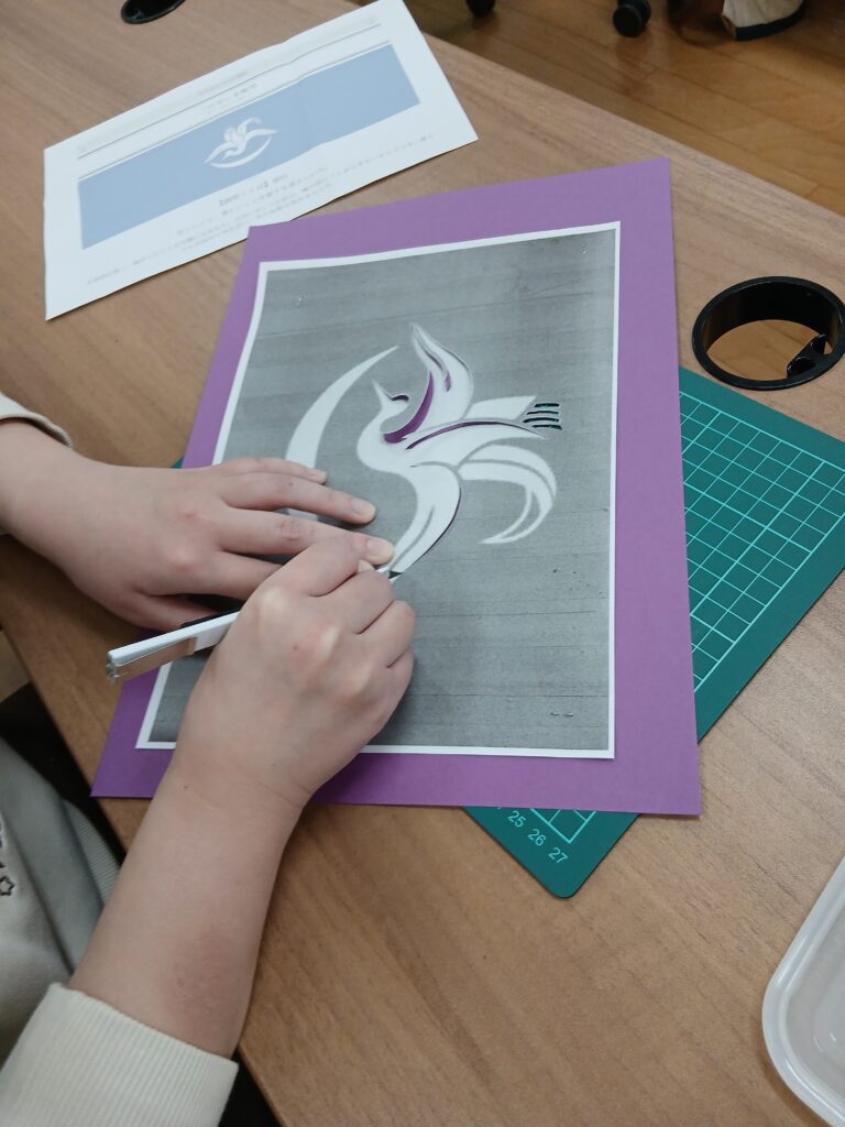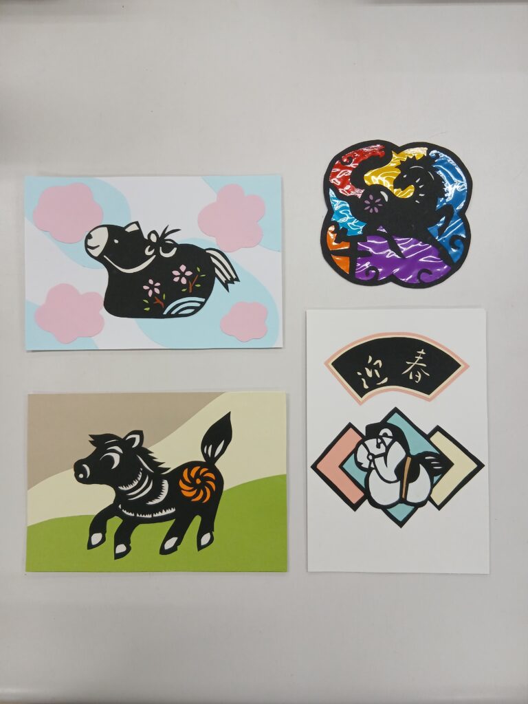 今年最初のアイキャッチ画像は、新年にぴったりな切り絵の作品です。こちらは、昨年地域の方に講師をお願いした「切り絵体験」に参加した若者の作品になります。綺麗に色付けし、とっても素敵な作品に仕上げてくれました✨
