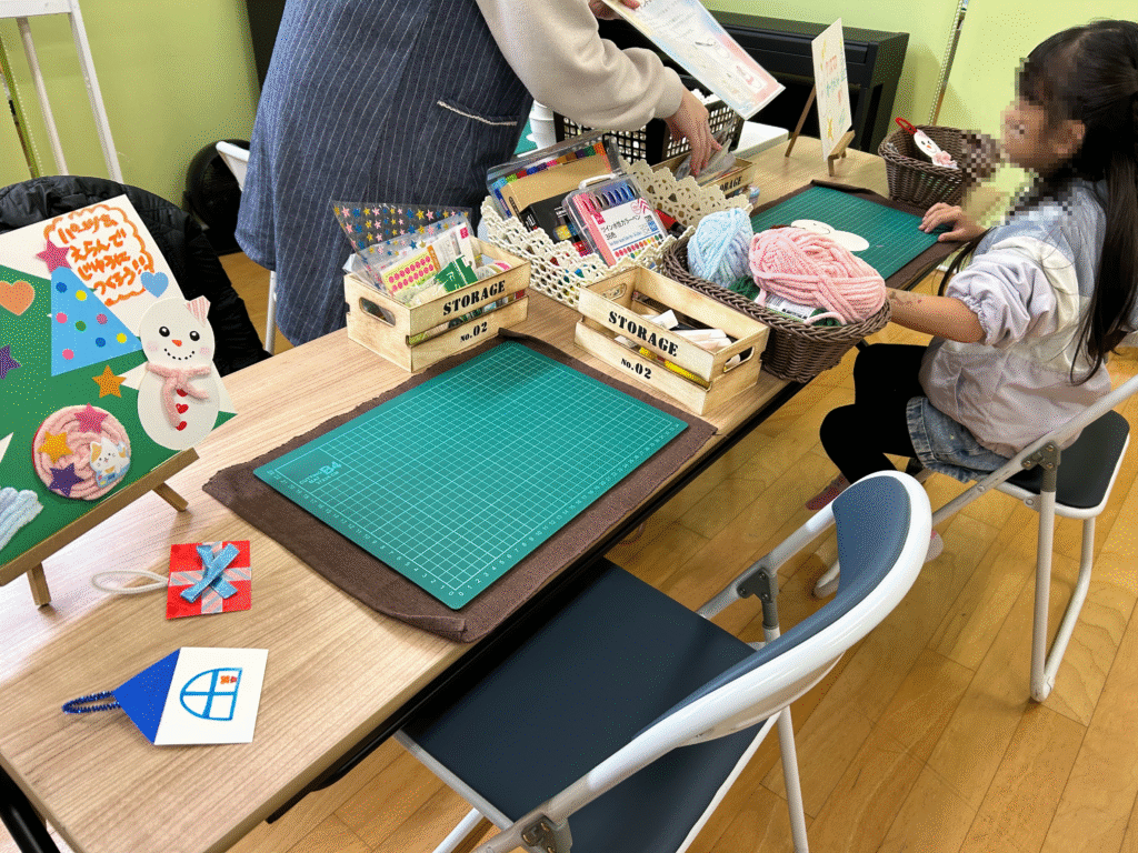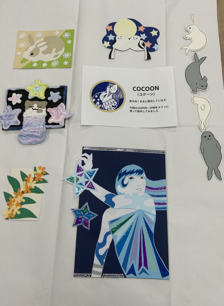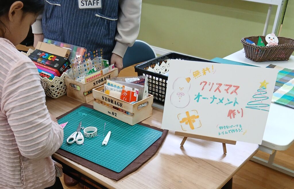 月1回、アート交流会を開いており、その中で「出店をちょっとやってみたい」方で話し合い、クリスマスオーナメント作りワークショップをやりました。最終的に3人で対面やチャットで話し合い、準備し、試作品を作り、当日を迎えました。そのチャットでのやり取りを見ていて感動しました!イベント当日にアルバイトが入ってしまい、来られなくなった方が進んでパーツ作りをご自宅でやってくださる他、前日にも会場に足を運んで、自ら必要と感じたものを作ってくださりました。また、やはり当日の参加はできないけれど、自ら率先して「看板を作りましょうか?」と、とてもステキな手書きの看板を作ってくれた方もいます。さらには、当日ワークショップ運営することになった方は、子どもたちにわかりやすいようにと「説明書き」をとっても上手に作ってきてくれました。この他、当日に飛び入りで運営を手伝ってくださった方も、こちらからの説明が不十分な中、本当に丁寧にお客様対応をしてくださり…、それぞれの活動が本当に素晴らしかったです!そして、それぞれの力が結集して成し遂げられた取り組みです。