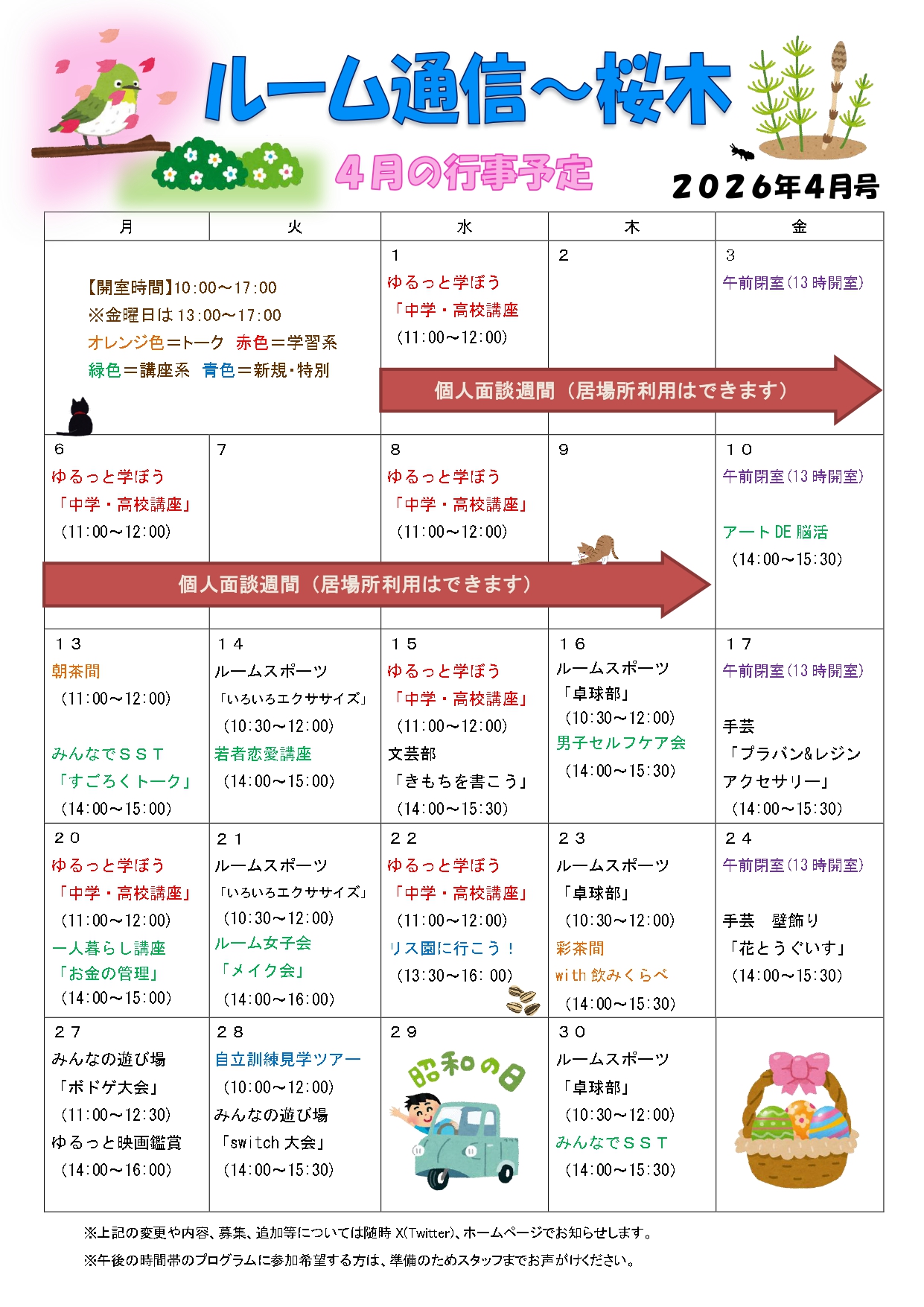 【若者自立支援ルーム】桜木ルーム通信11月号