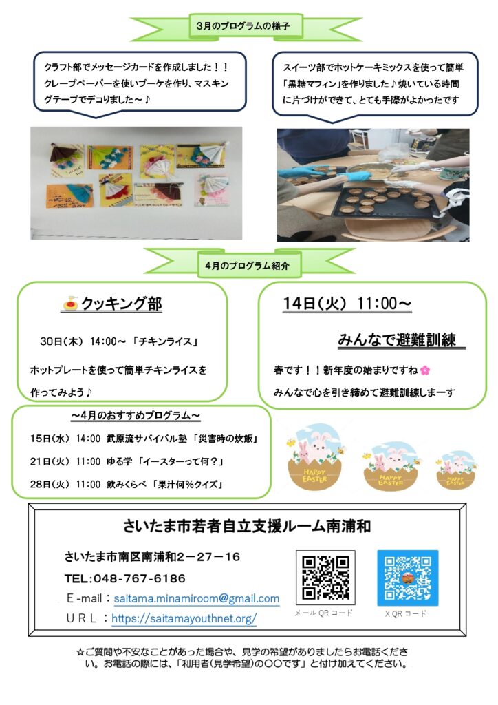若者自立支援ルーム_南浦和ルーム通信2026年4月号