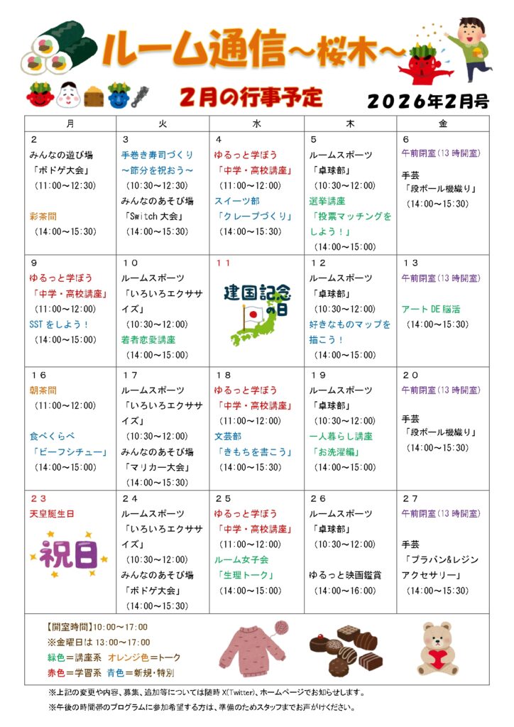 若者自立支援ルーム_桜木ルーム通信2026年2月号