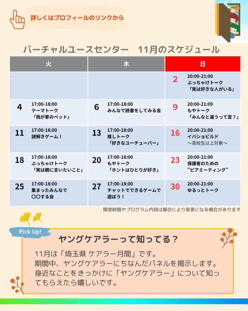 【埼玉県バーチャルユースセンター】_11月イベントカレンダー
